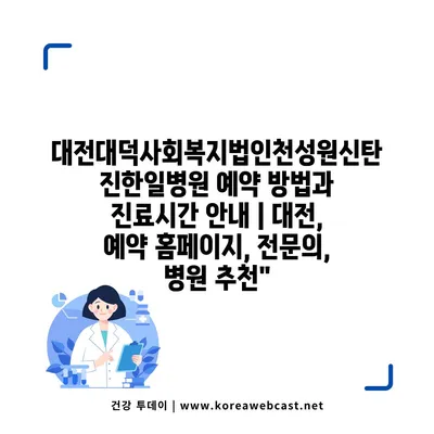 ✅ 대전 대덕 사회복지법인 천성원 신탄진 한일병원의 예약 방법을 자세히 알아보세요.