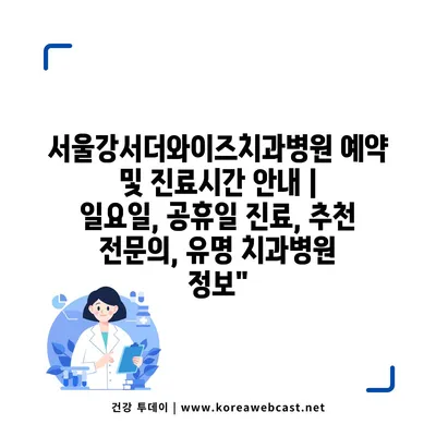 서울강서더와이즈치과병원 예약 및 진료시간 안내 | 일요일, 공휴일 진료, 추천 전문의, 유명 치과병원 정보”