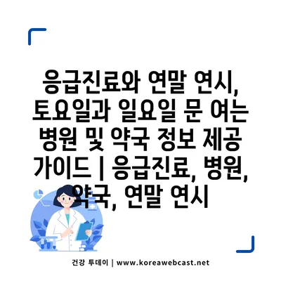 응급진료와 연말 연시, 토요일과 일요일 문 여는 병원 및 약국 정보 제공 설명서 | 응급진료, 병원, 약국, 연말 연시에 대한 내용을 공유합니다.