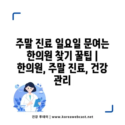✅ 주말에 치료받을 수 있는 한의원을 쉽게 찾는 방법을 알아보세요.
