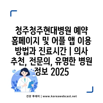 청주청주현대병원 예약 홈페이지 및 어플 앱 이용 방법과 진료시간 | 의사 추천, 전연락, 유명한 병원 정보 2025에 대해 공지제공합니다.
