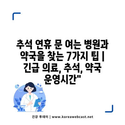 추석 연휴 문 여는 병원과 약국을 찾는 7가지 팁 | 긴급 의료, 추석, 약국 운영시간에 대해 자주 묻는 질문 TOP 5