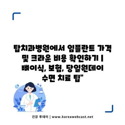 탑치과병원에서 임플란트 가격 및 크라운 비용 확인하기 | 뼈이식, 보험, 당일원데이 수면 치료 팁에 대해 자주 묻는 질문 TOP 5