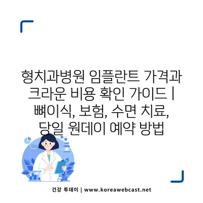 형치과병원 임플란트 가격과 크라운 비용 확인 설명서 | 뼈이식, 보험, 수면 치료, 당일 원데이 예약 방법에 대해 자주 묻는 질문 TOP 5